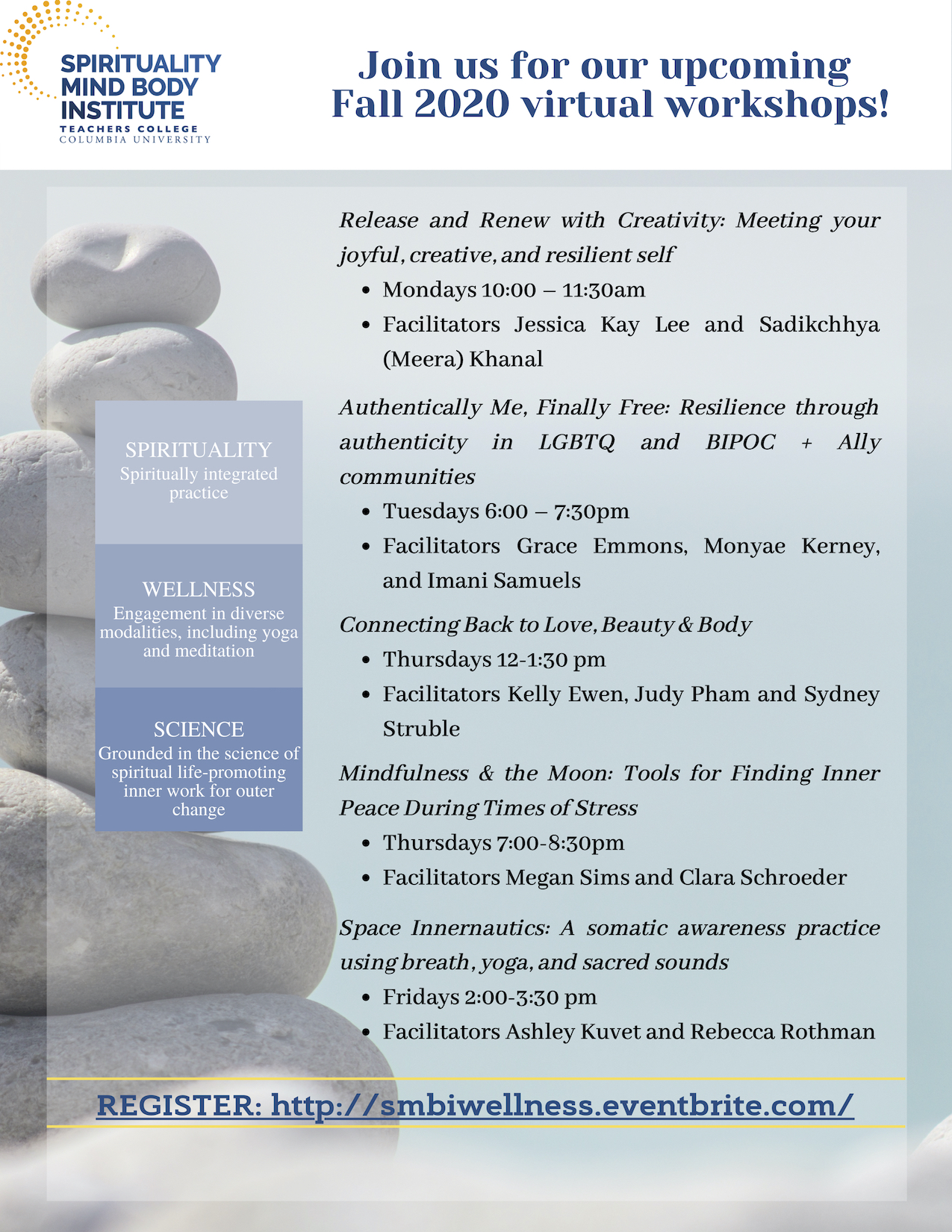 The current social media climate and beauty industry can reinforce feelings of self-doubt and perpetuate the message that beauty equals conformity. In this workshop series, participants will cultivate greater self-acceptance, self-compassion, and decrease self-criticism through a variety of contemplative practices. By the end of this series, participants will have tools to help them feel more comfortable in their own skin and embrace their inherent and authentic beauty. The series will include journaling, mindfulness meditation and self-care facial techniques that will leave you glowing from the inside out!