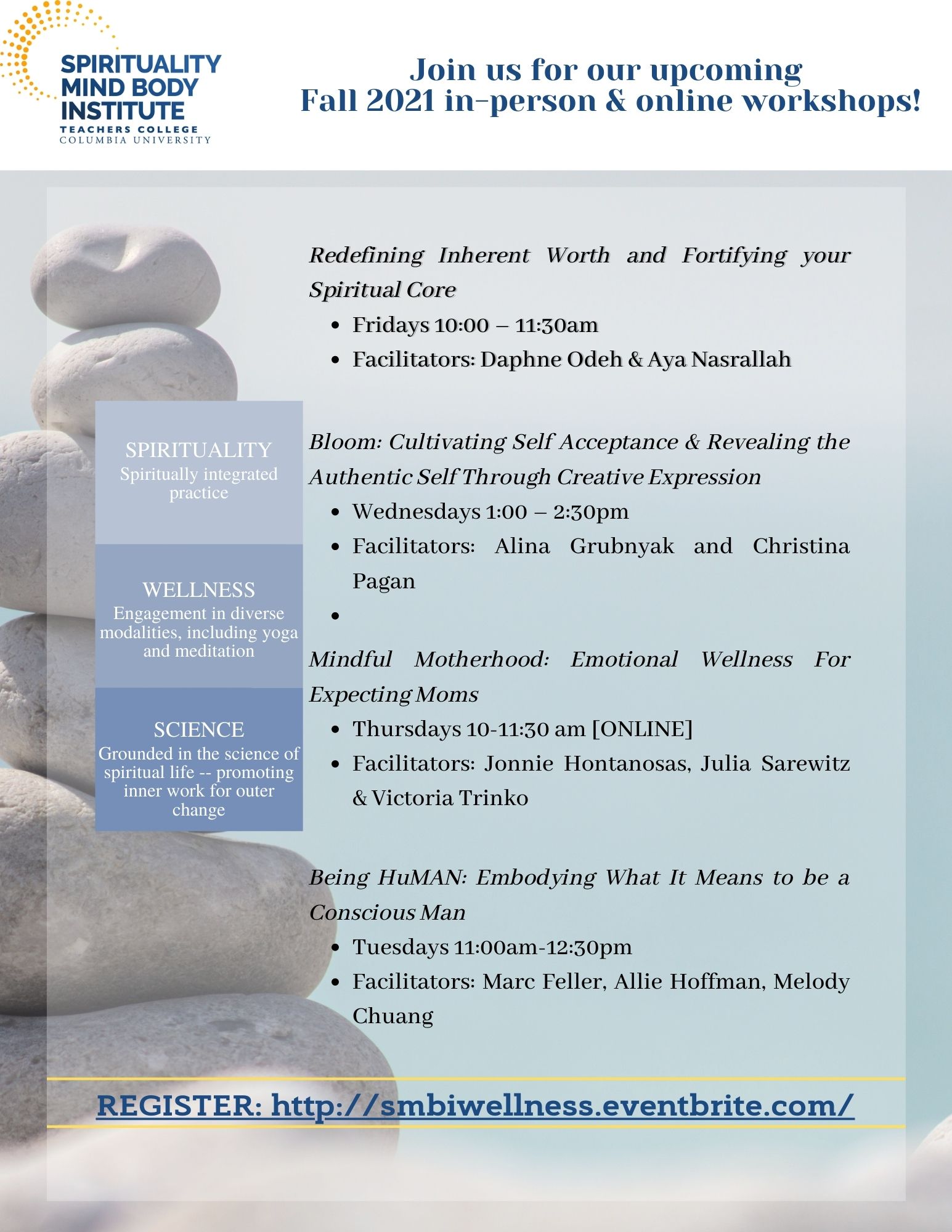 The current social media climate and beauty industry can reinforce feelings of self-doubt and perpetuate the message that beauty equals conformity. In this workshop series, participants will cultivate greater self-acceptance, self-compassion, and decrease self-criticism through a variety of contemplative practices. By the end of this series, participants will have tools to help them feel more comfortable in their own skin and embrace their inherent and authentic beauty. The series will include journaling, mindfulness meditation and self-care facial techniques that will leave you glowing from the inside out!