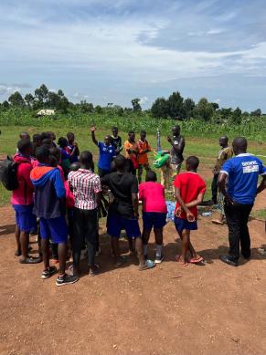 In May 2023, the Ubume project team led a one-week teacher professional development (TPD) workshop in Hoima, Uganda, with 13 teachers and 3 school leaders from the local school. The team was also joined by representatives from an international non-governmental organization (INGO) that oversees education in the settlement, UNHCR (the UN refugee agency), and the Ugandan Government, all of whom are based in the Kyangwali refugee settlement. The workshop was led by teaching artists from Arts Ignite and Artolution. Workshop sessions included: utilizing arts as a teaching method in other core subjects; teaching theater, storytelling, music, dance, painting, drawing, and sculpture-making; reviewing P3-P6 curricula; measuring program outcomes and the feasibility of implementing the curricula in their setting through surveys and reflections; and practicing the lesson plans with students at the school with teaching artists demonstrating.