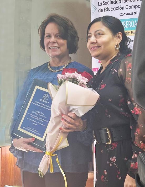 Picture of the award to Professor Cortina for her trajectory in International and Comparative Education 2023