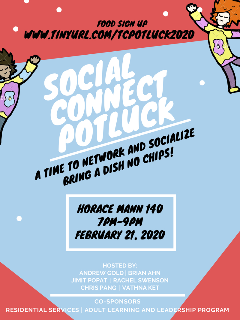 - Hot Chocolate Social | Feb 3 @ 4pm (New Residence Hall, TV Lounge). Registration: tinyurl.com/ALLhcs