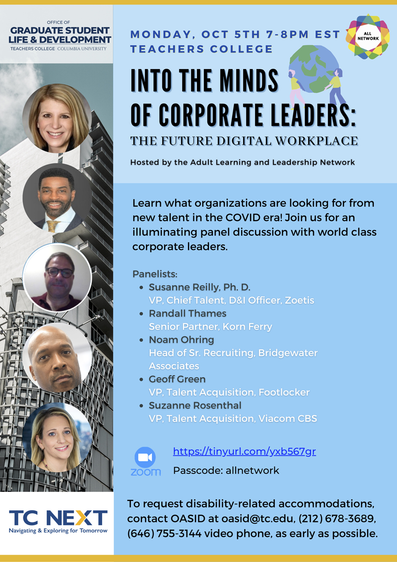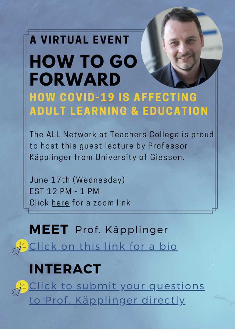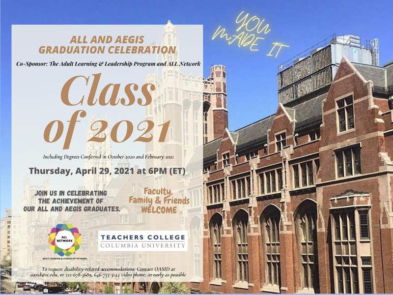 The Adult Learning and Leadership (ALL) Network is the official student organization for Teachers College, Columbia University's Adult Learning and Leadership Program.