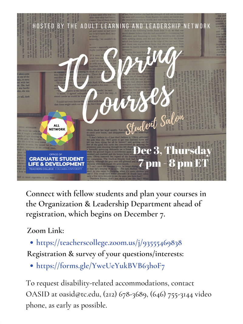 For those of you who want to express interests in becoming ALL Network Leadership team in 2023-2024 academic year, please contact us directly: allnetwork@tc.columbia.edu and we will be in touch with you!