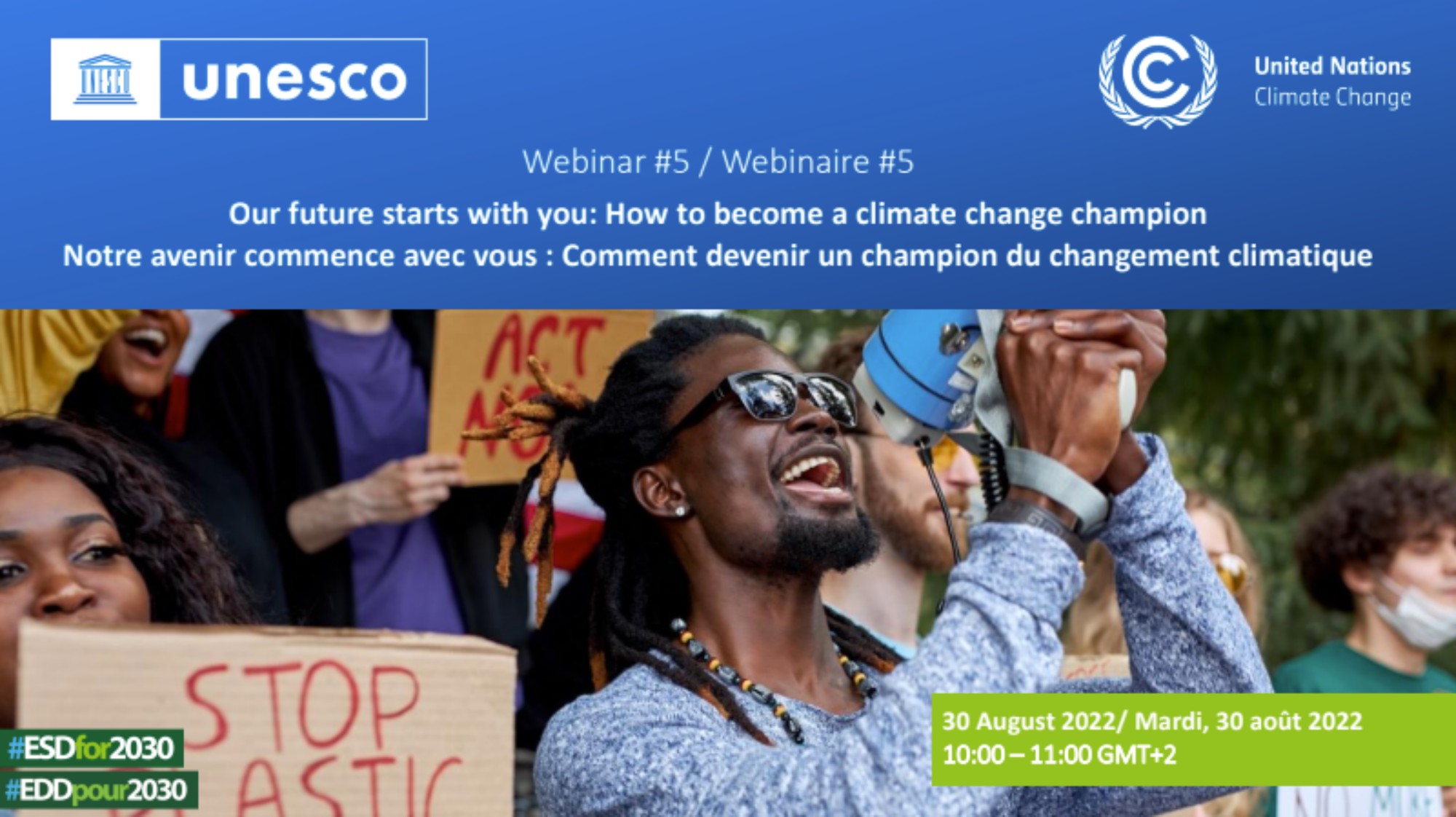 To respond to the urgent calls for action from young people to ensure every learner is equipped to tackle climate change, UNESCO and UNFCCC launched a series of monthly conversations on climate change education. The series consists of 8 webinars from April to November, on the road to COP27 to be held in Sharm El-Sheikh, Egypt in November 2022. The fifth webinar focused on the idea of learning for change and how education can empower people to take action for the planet. The panel featured two youth activists - Ayshka Najib and Hoor Ahli, and Founding Director of the Center for Sustainable Futures, Oren Pizmony-Levy. They discussed how youth become climate champions and what it means to be a champion and activist, and also outlined how education can be changed to encourage more students to become climate champions.